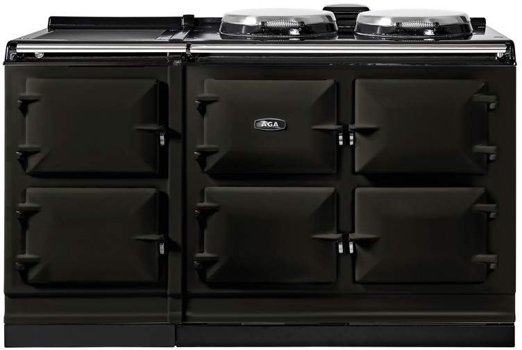 The new electric AGA eR7 provides a cast-iron baking oven, roasting oven and simmering oven and the 150 model offers two additional steel ovens for slow cooking and warming.